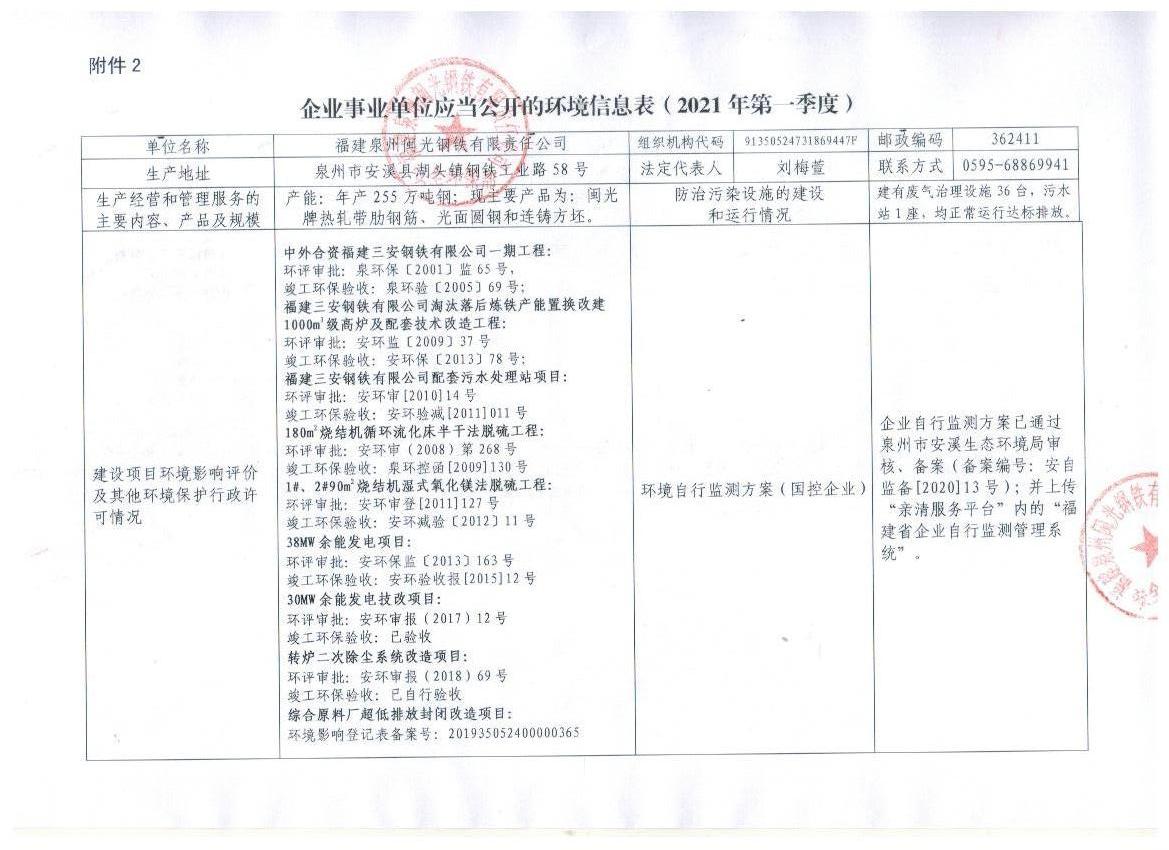 企業(yè)事業(yè)單位應(yīng)當(dāng)公開的環(huán)境信息表(2021年度第一季度)
