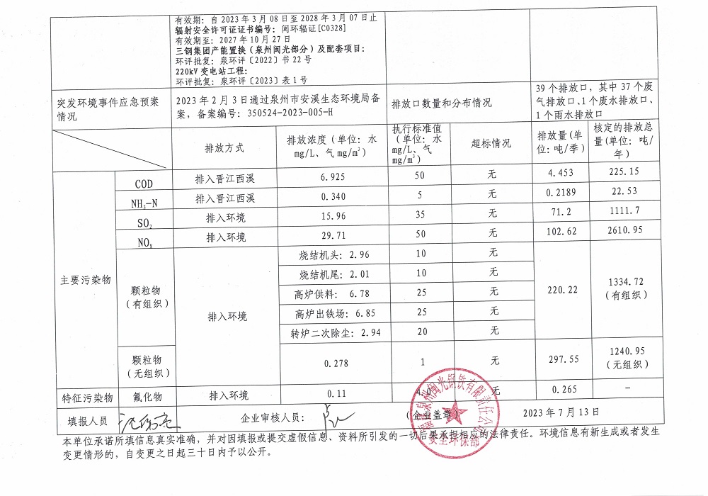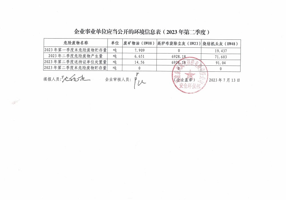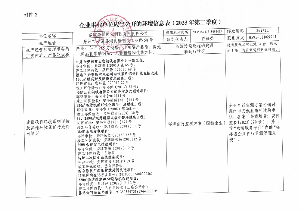 企業(yè)事業(yè)單位應(yīng)當(dāng)公開的環(huán)境信息表(2023年度第二季度)