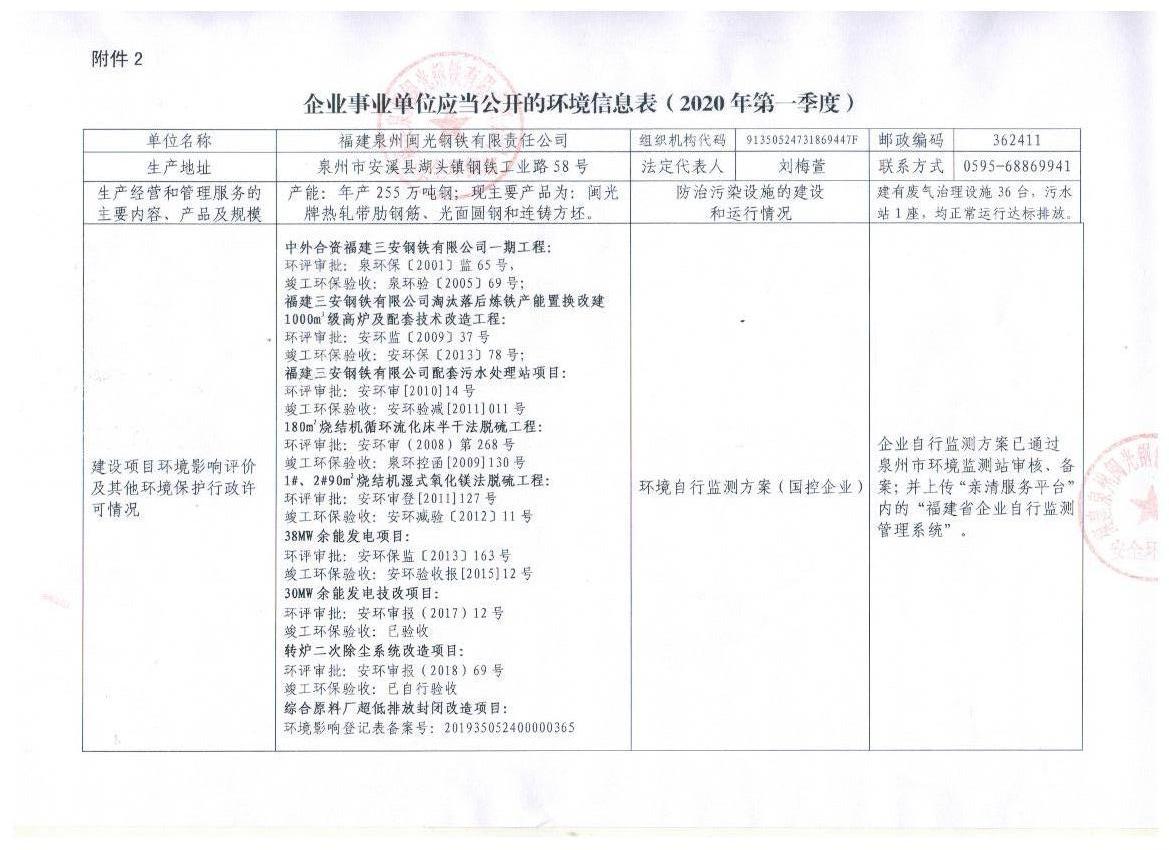 企業(yè)事業(yè)單位應(yīng)當(dāng)公開的環(huán)境信息表(2020年度第一季度)