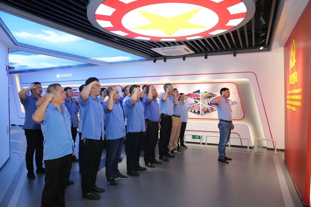 “我志愿加入中國共產(chǎn)黨,擁護黨的綱領(lǐng),遵守黨的章程……”在泉州閩光黨群活動服務(wù)中心里,黨委委員、公司班子成員、各支部書記在公司黨委書記汪燦榮同志的領(lǐng)誓下,面向鮮紅的黨旗,舉起右拳,莊嚴(yán)宣誓。
